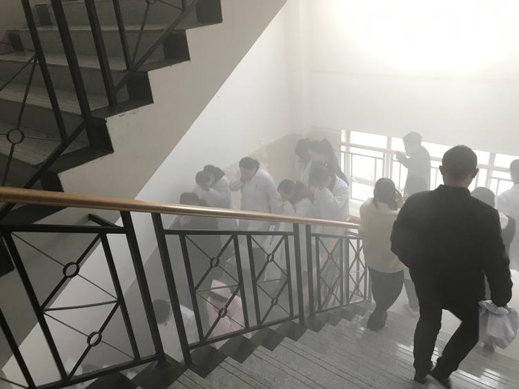 上午九点十分,大楼楼道突然出现了浓烟,警报响起,在医学院学生党支部及辅警中队工作人员的指挥下,各楼层师生快速有序的通过安全通道到达医学楼北面的空地,未出现拥挤、慌乱等现象。演练结束后,现场开展了消防安全知识普及教育。首先,张明队长给全体师生强调了火灾现场逃生的“黄金三分钟”,警醒师生在撤离时要注重时间观念,务必在有限的安全时间内迅速撤离。接着,王权海院长为大家讲述了“5.12”汶川大地震中安县桑枣中学师生安全逃生、无一人伤亡的事例,要求全体师生要将消防安全“牢记在心、警钟长鸣”。他指出,安全即是责任,对自己负责即是对他人负责,提醒大家要牢牢树立安全责任意识。