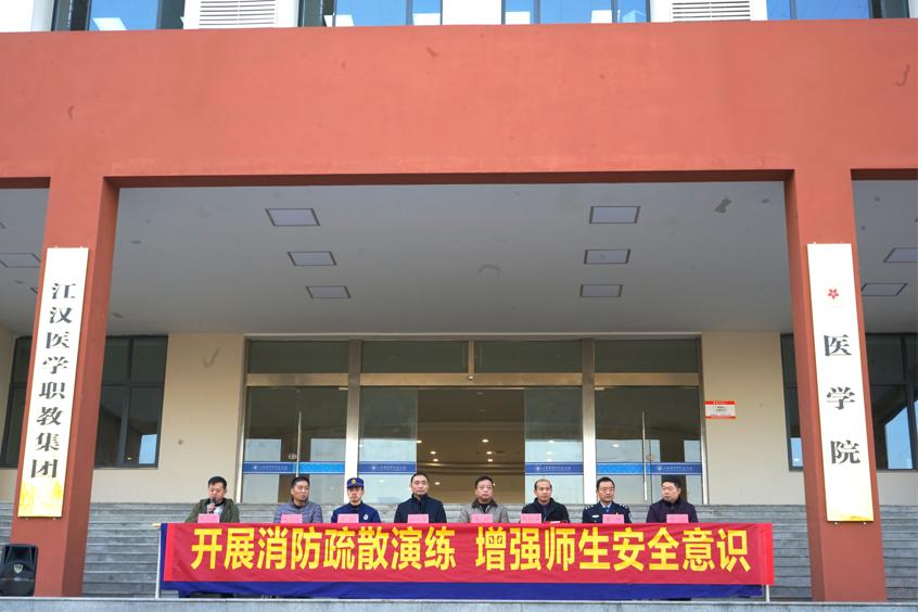 为增强师生消防安全意识,掌握正确的逃生技能,12月5日上午,我院于医学楼开展了消防疏散演练活动。市消防大队副队长张明、仙桃职业学院副院长谢从堂、医学院院长王权海、工会主席王浩等领导与医学院师生一同参加了活动。