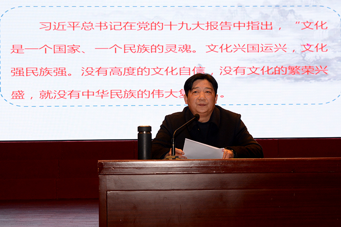 3月20日晚,文化艺术中心座无虚席、气氛热烈。党委书记郭百高以《走进国学 认知国学 拥抱国学》为题,与医学院1200余名师生分享国学经典,共同领略国学的精深与魅力。