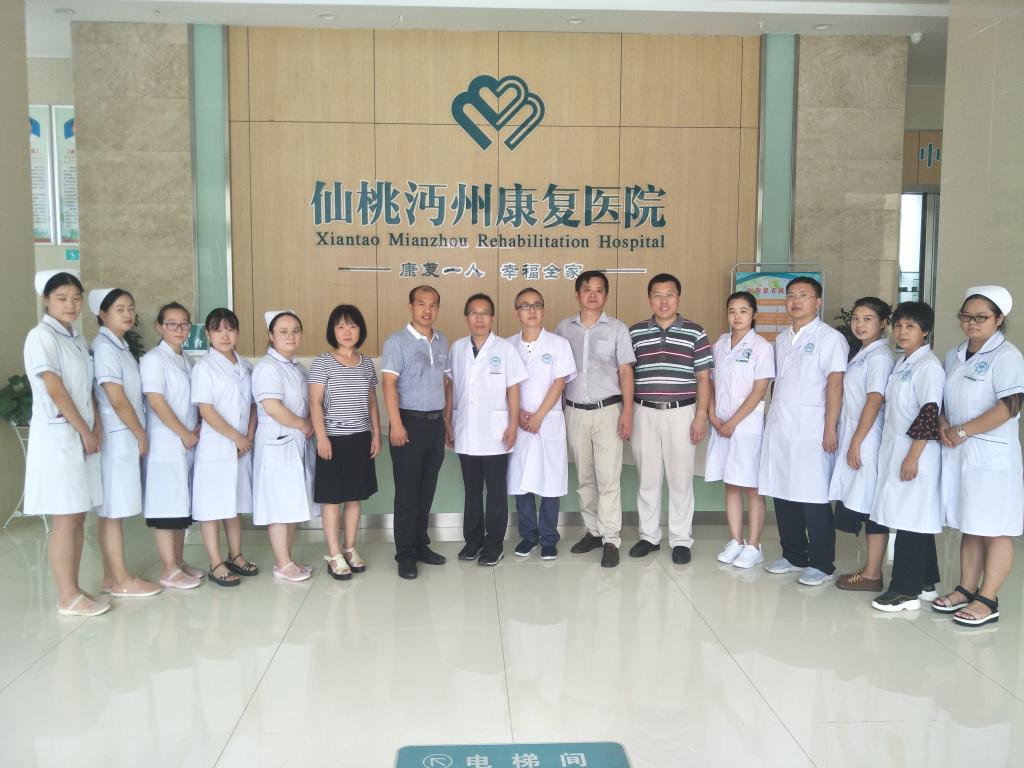 8月14日下午,我院与仙桃沔州康复医院合作办学签约仪式在沔州康复医院三楼会议厅顺利举行。出席签约仪式的有仙桃沔州康复医院院长黎新平、副院长潘啸,仙桃职业学院党委委员、医学院院长王权海、医学院党总支副书记肖少华、医学院副院长江桃桃、康复治疗技术专业教研室主任任国锋及部分师生代表。