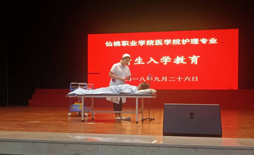 护理专业教研室主任张苹蓉介绍了专业培养方案、培养目标及专业学习特点、方法,并带领护理专业学生进行了护理技能现场展示,让新同学对护理专业有了更为直观的认识。