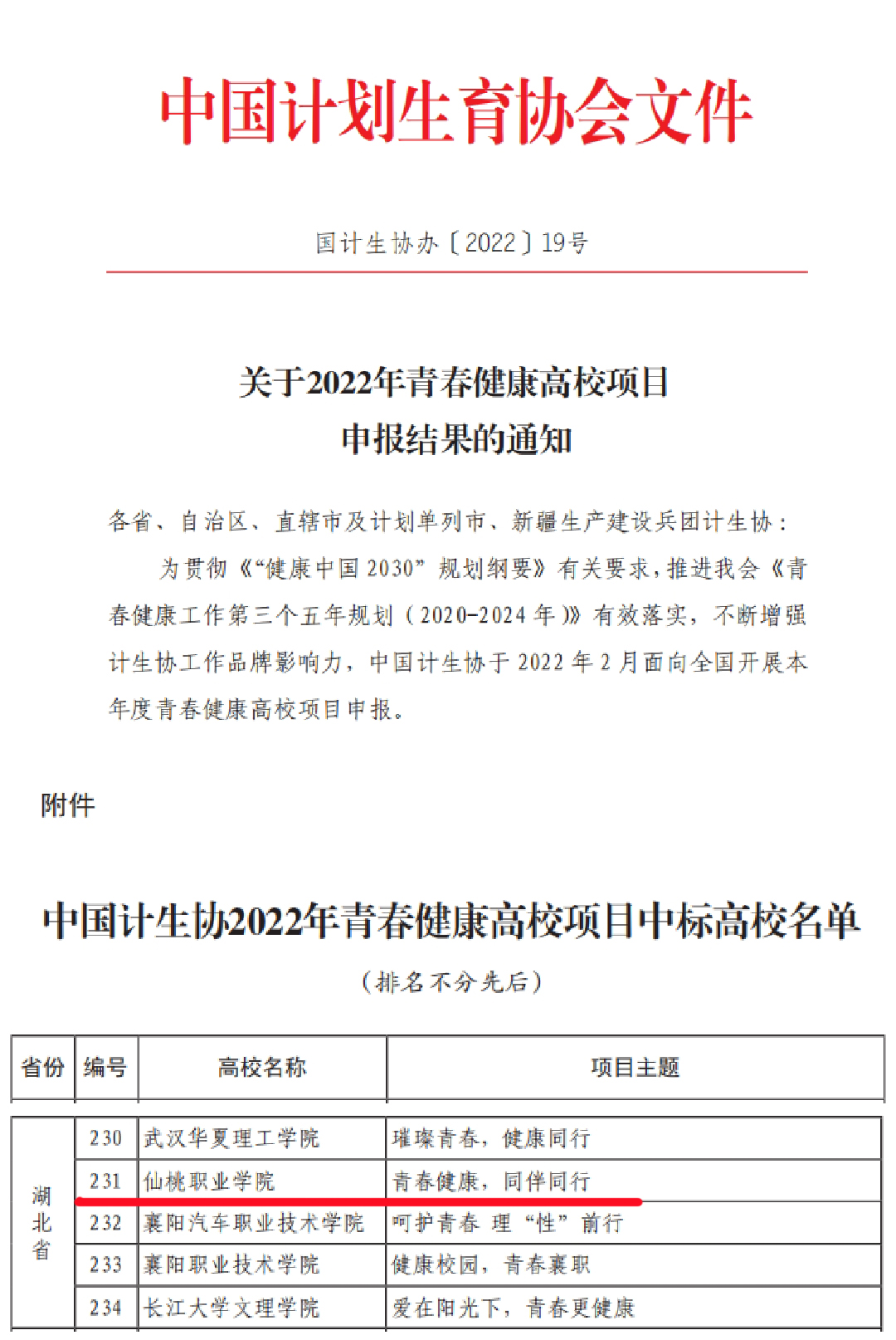 近日,中国计划生育协会下发《关于2022年青春健康高校项目申报结果的通知》,经严格评审,我院工会和学工处心理健康教育中心共同申报的“青春健康 同伴同行”项目获批立项,这是我院连续五年入选该项目。