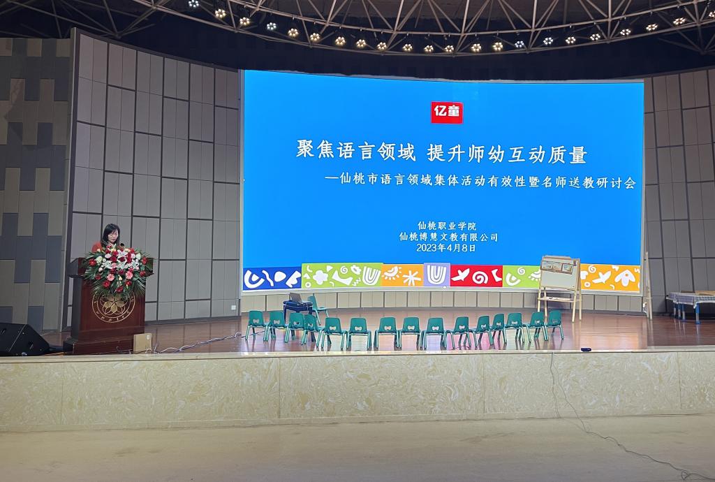 4月8日,由教育学院和亿童仙桃幼教服务中心承办的仙桃市语言领域集体活动有效性暨名师送教研讨会在多功能厅举行,来自仙桃、天门、汉川、石首等地40余所幼儿园骨干教师和教育学院师生共300余人参加研讨会。