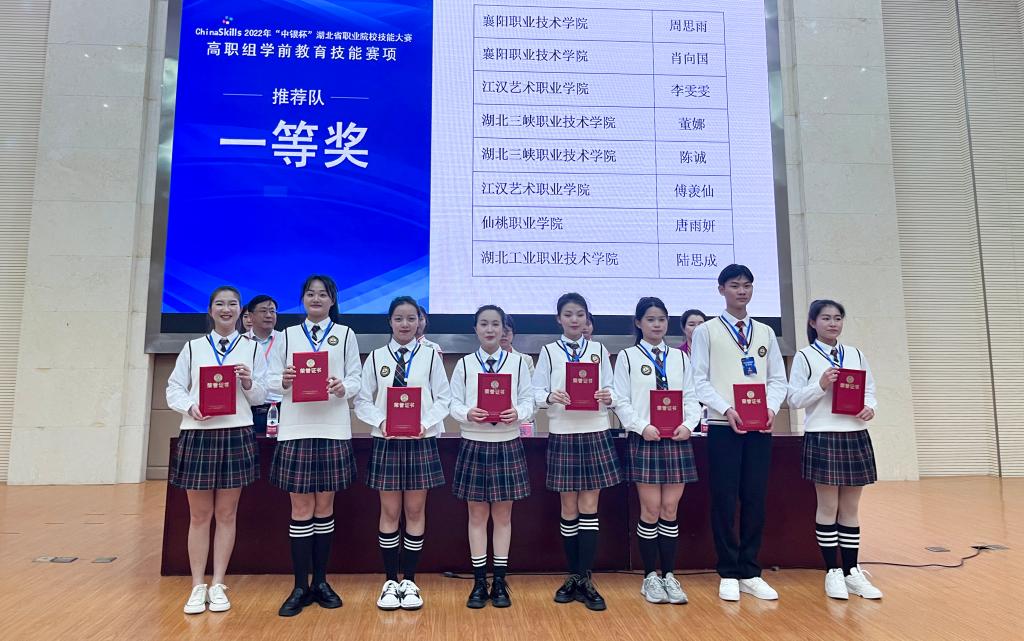 4月14日至15日,2022年湖北省职业院校技能大赛高职组学前教育专业技能赛项在襄阳职业技术学院举行,教育学院4名参赛选手全部获奖,其中唐雨妍获推荐队一等奖,郭诗雨、马祈佳分获推荐队、抽测队二等奖,张晴获抽测队三等奖。
