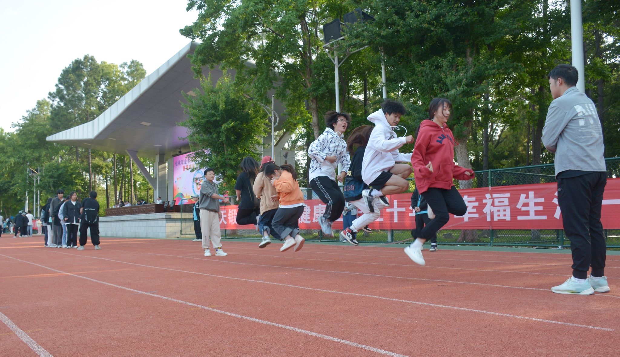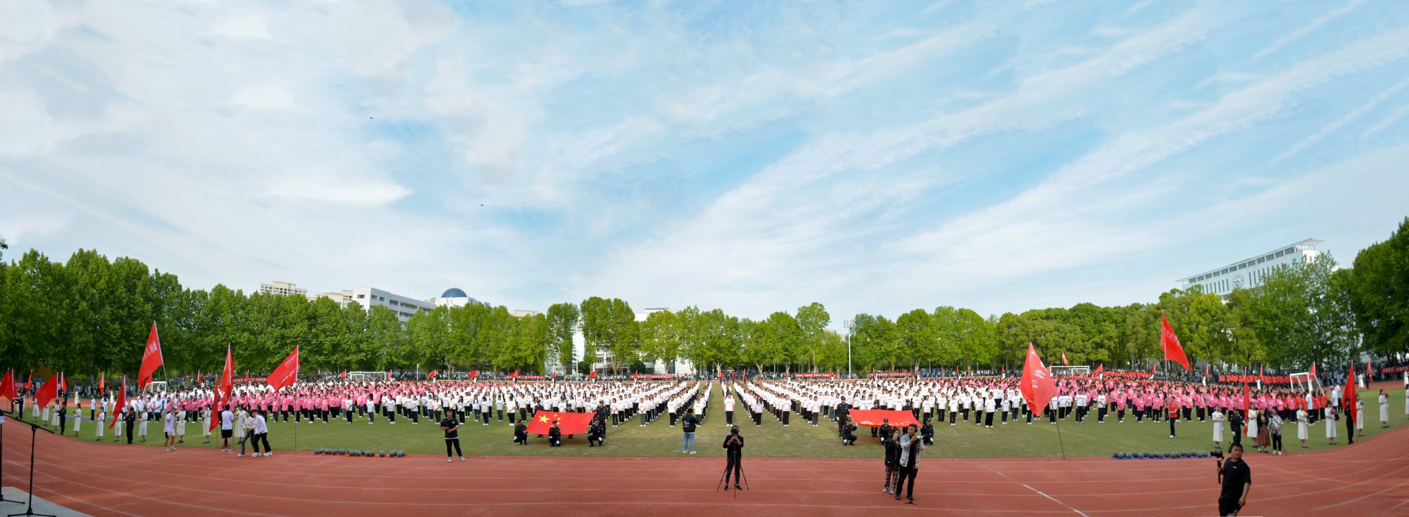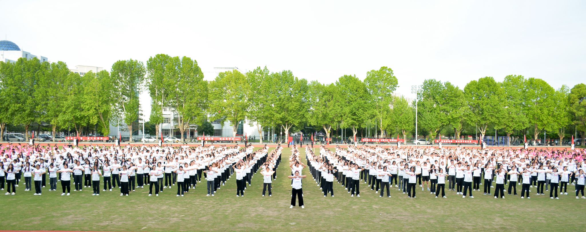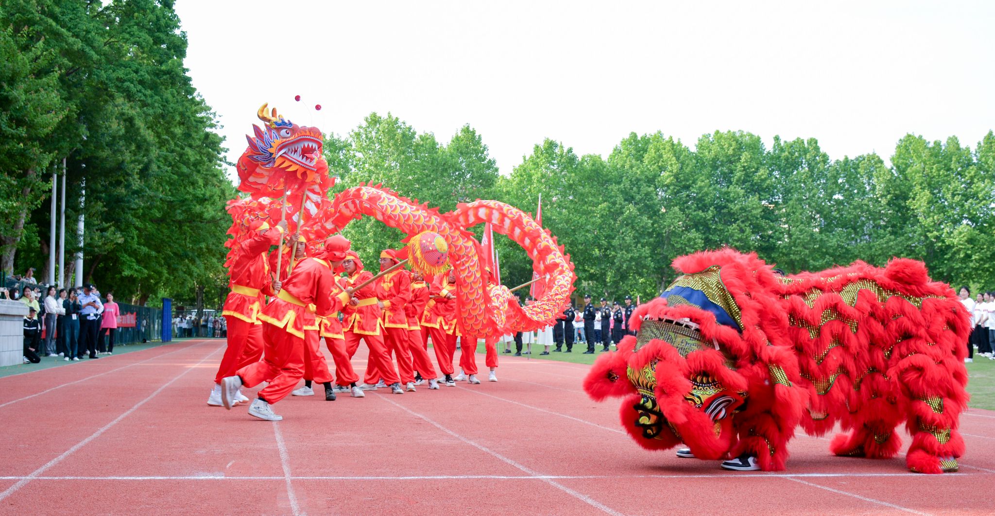 李小双宣布运动会开幕。1200余名师生呈上精彩纷呈的文体表演。他们纵情放歌、唱响校园,抒发“放飞期待”的憧憬之情;张扬活力、舞动青春,带来动感十足的运动时装秀和啦啦操表演;龙腾狮跃、刚柔并济,在八段锦表演和舞龙舞狮中尽展中华优秀传统文化魅力。