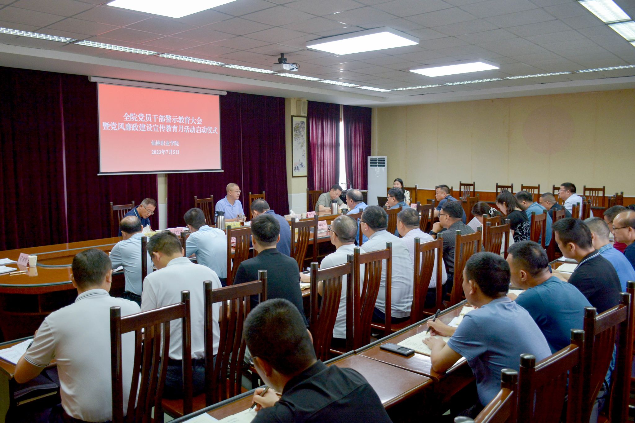 7月5日上午,我院召开全院党员干部警示教育大会暨党风廉政建设宣教月活动启动仪式。党委书记邓念国出席并讲廉政党课。党委副书记、院长李立勇等学院领导出席。