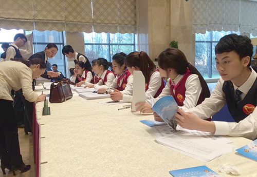 医学院志愿者为首届沔商大会热情服务