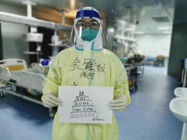 深夜十点,咸宁市中心医院重症感染科隔离区的护士金露纹忙完手头的事情,突然想起今天是母亲的五十岁生日,不能当面送出祝福和礼物的她,情急之下,临时找了一张白纸,用心画了一个“生日蛋糕”,“妈妈,祝你生日快乐。”她兴奋拿起“暖心礼物”隔空送出对妈妈的牵挂和祝福。
