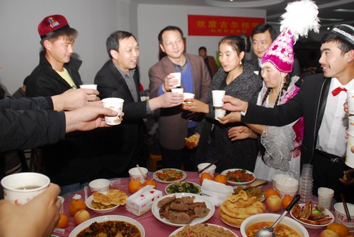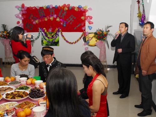 随后袁书记向同学们祝贺节日,并和所有师生一起品尝了一顿颇具穆斯林特色的节日盛餐。晚餐结束后,同学们还表演了精彩的民族歌舞节目,组织部、学工处、招毕办、后勤处、医学院等相关部门负责人,新疆预科班课任教师一同参加了联欢。